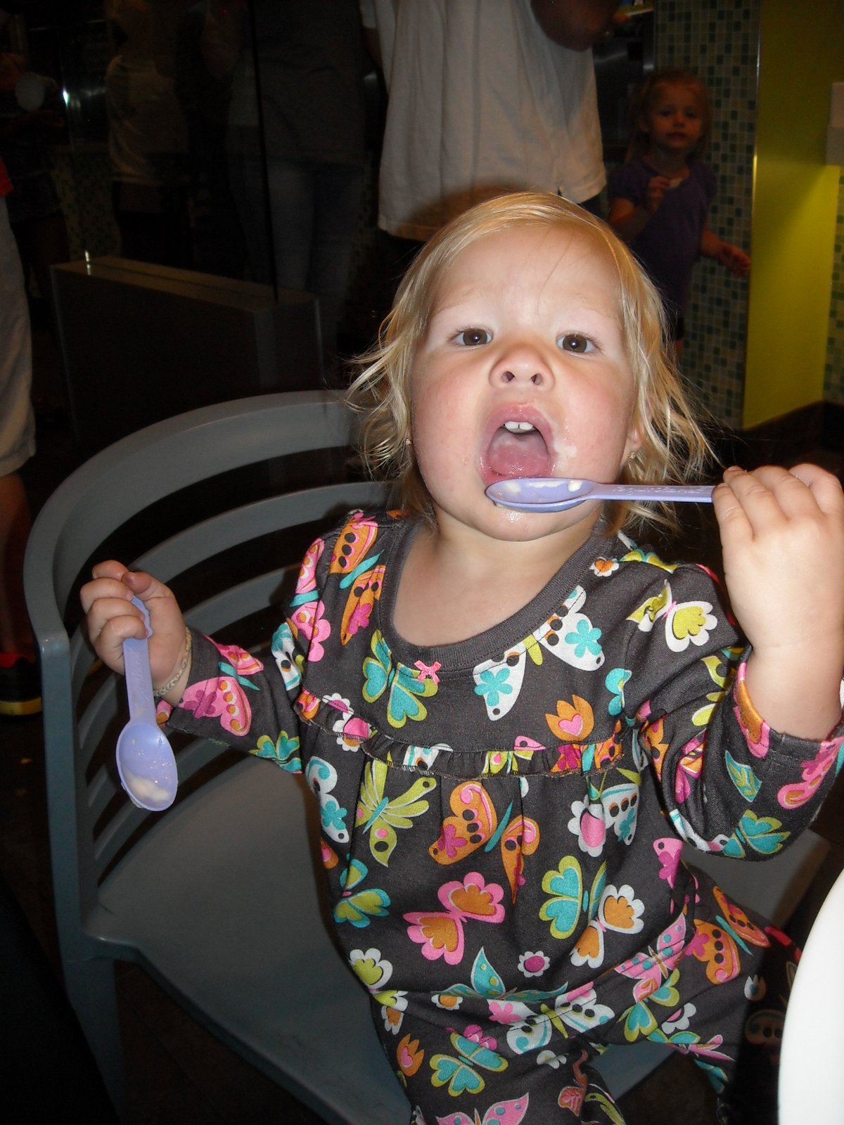 Gator's was easier to spot. He found a big pink bead first.... Ry found hers too, it's just her yogurt was pink and the bead blended in really well.